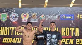 DUA PERSONEL PETARUNG MUAYTHAI BATALYON C PELOPOR SATU BRIMOB RIAU MENJUARAI KEJUARAAN DUMAI MUAYTHAI OPEN 2026