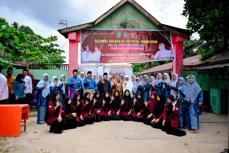 PINGGIR – Bupati Bengkalis, Kasmarni, mendampingi Anggota DPR RI, Dewi Juliani, dalam kegiatan penyerahan bantuan sembako melalui program Corporate Social Responsibility (CSR) bersama Bank Rakyat Indonesia kepada Yayasan Pendidikan Islam Pondok Pesantren Almuhajirin di Desa Muara Basung Kecamatan Pinggir, Sabtu, 14 Maret 2026.