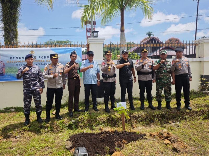Kepulauan Mentawai – Dalam upaya mendukung pelestarian lingkungan dan menciptakan kawasan hijau, jajaran Kepolisian Daerah Sumatera Barat melaksanakan kegiatan penanaman pohon di lingkungan Markas Komando (Mako) Polres Kepulauan Mentawai, Sabtu (4/4/2026).