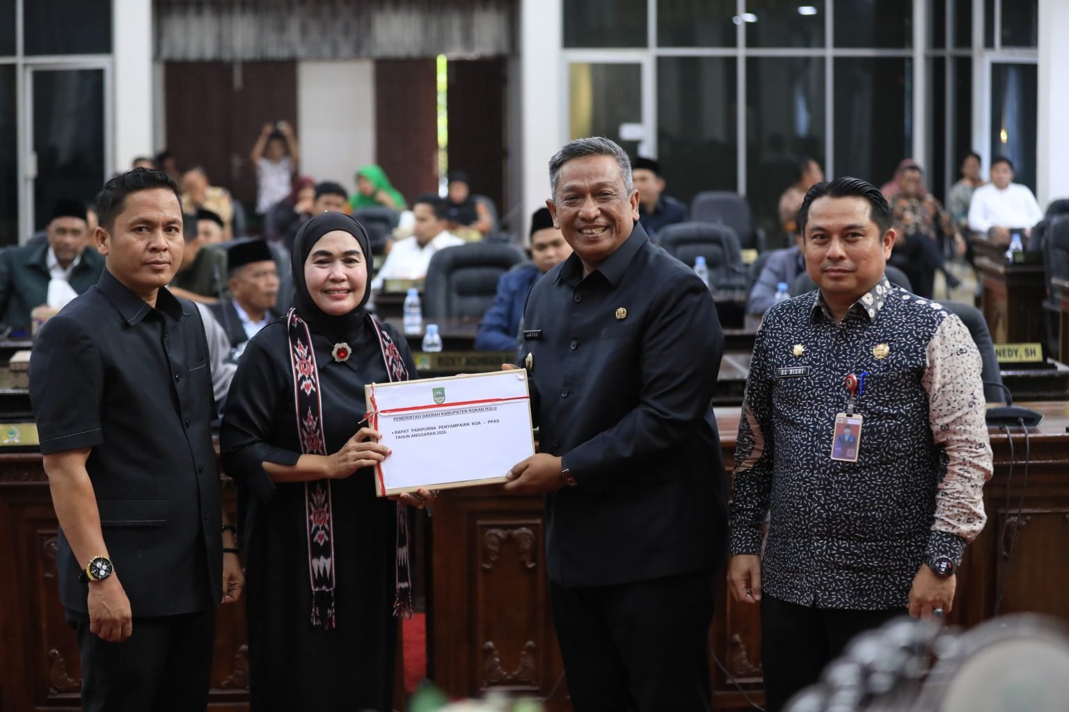Rancangan KUA dan PPAS APBD Pemkab Rokan Hulu TA 2026 diserahkan langsung Bupati Anton, S.T., M.M., dalam Ruang Rapat Paripurna dikantor DPRD Rokan Hulu dijalan Panglima Sulung, Desa Koto Tinggi, Kecamatan Rambah, Pasir Pengaraian, dipimpin Ketua DPRD Hj Sumiartini didampingi Wakil Ketua Mohammad Aidi, S.H., Porkot Lubis, S.H.,M.M bersama Anggota DPRD memenuhi kourum berdasarkan laporan protokol DPRD Rokan Hulu.