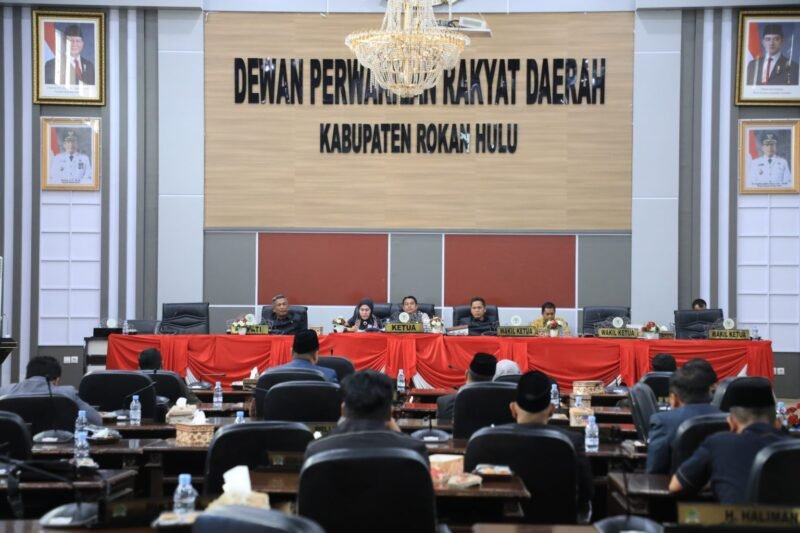 ROKAN HULU – Dewan Perwakilan Rakyat Daerah Kabupaten Rokan Hulu melaksanakan Rapat Paripurna penyampaian Rancangan Kebijakan Umum Anggaran dan Prioritas Plafon Anggaran Sementara Anggaran Pendapatan dan Belanja Daerah. Pemerintah Kabupaten Rokan Hulu Tahun Anggaran (TA) 2026, Kamis (4/12/2025), Rp 1.753.800.208.210. Dengan Lima Program Prioritas, Kamis (4/12/2026).