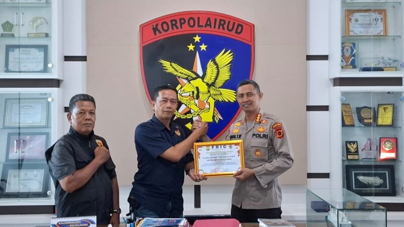 Kali ini Ketua Dewan Pimpinan Wilayah Fast Respon Indonesia Center Provinsi Jambi Dody Candra didampingi Bendahara FRIC Jambi Basri Andi Langung menyerahkan piagam penghargaan kepada Dirpolairud Polda Jambi Kombes Pol Agus Tri Waluyo SIK MH atas kinerja dan program terbaiknya yang bersentuhan dan bermanfaat langsung bagi masyakarat .