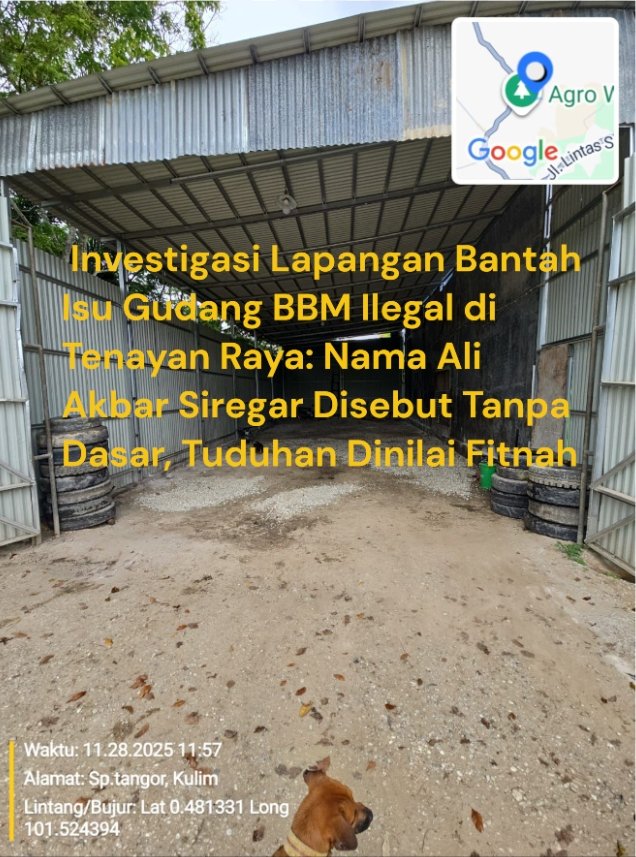Pekanbaru — Isu mengenai dugaan keberadaan gudang penimbunan BBM bersubsidi ilegal di kawasan Jalan Budi Luhur, Kelurahan Sialang Sakti, Kecamatan Tenayan Raya, kembali mencuat setelah sejumlah pemberitaan mengaitkannya dengan nama Ali Akbar Siregar. Seiring dengan ramainya isu tersebut, awak media melakukan investigasi langsung pada Jumat (28/11/2025) sekitar pukul 11.50 WIB untuk memastikan kebenaran tuduhan tersebut.