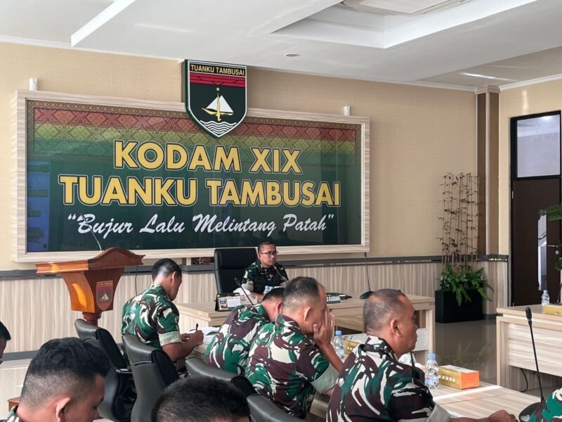 PEKANBARU || Kodam XIX/Tuanku Tambusai melaksanakan Rapat Kerja Teknis Personel (Rakernispers) Tahun Anggaran 2026 pada Kamis, 2 April 2026, bertempat di Ruang Yudha Makodam XIX/Tuanku Tambusai. Kegiatan ini dipimpin oleh Asisten Personel (Aspers) Kasdam XIX/Tuanku Tambusai, Kolonel Arh Novianto Firmansyah, S.E., M.Tr(Han).