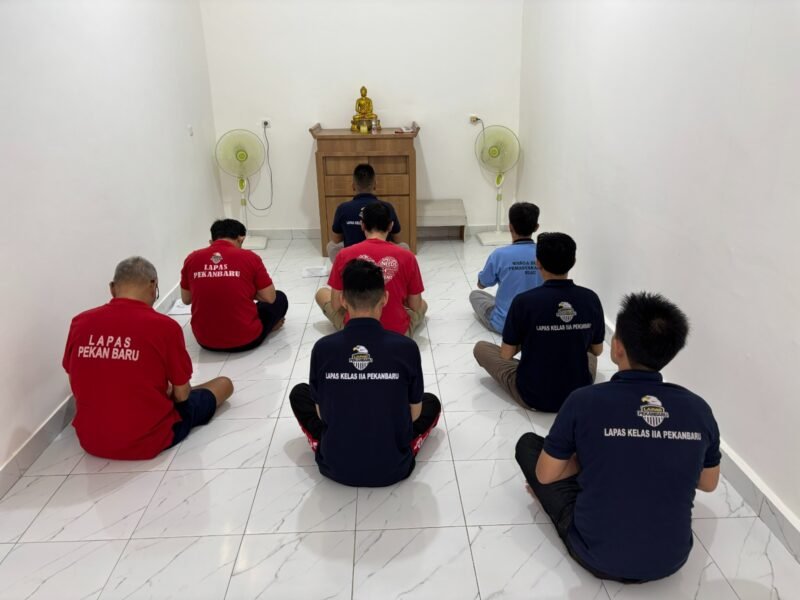 Pekanbaru, – Lembaga Pemasyarakatan (Lapas) Kelas IIA Pekanbaru terus berkomitmen memenuhi hak-hak dasar warga binaan, salah satunya hak dalam menjalankan ibadah sesuai dengan agama dan kepercayaan masing-masing. Komitmen tersebut diwujudkan melalui pelaksanaan kegiatan ibadah warga binaan beragama Buddha di Cetiya Dharma Bakti Lapas Kelas IIA Pekanbaru, yang berlangsung dengan tertib dan penuh khidmat, Rabu (21/01).