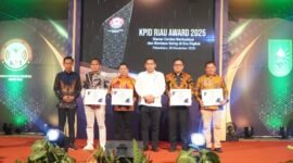 Wakil Ketua I DPRD Bengkalis Serahkan Piala Juara I Voli Putri Bermasa Cup I di Desa Petani