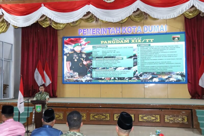 Dalam sambutannya, Wali Kota Dumai menyoroti potensi ekonomi daerah yang ditopang sektor CPO serta rencana pengembangan infrastruktur, termasuk pembangunan pelabuhan yang ditargetkan mulai direalisasikan pada 2028. Ia juga menekankan pentingnya dukungan TNI dalam menjaga stabilitas daerah. “Kami berharap arahan dan dukungan Pangdam, karena sinergi ini menjadi kunci percepatan pembangunan Kota Dumai,” ujarnya.