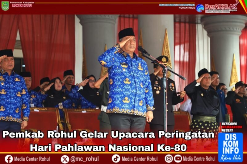 Rohul – Pemerintah Kabupaten (Pemkab) Rokan Hulu (Rohul) gelar upacara peringatan Hari Pahlawan Nasional ke-80 di halaman Kantor Bupati, Senin (10/11/2025).