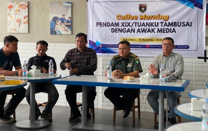 PEKANBARU || Penerangan Kodam (Pendam) XIX/Tuanku Tambusai menggelar kegiatan Coffee Morning bersama para awak media pada Selasa, 25 November 2025, bertempat di Kopitiam Jalan Thamrin Kota Pekanbaru. Acara yang dimulai pukul 10.00 WIB ini berlangsung dalam suasana santai, hangat, dan penuh keakraban.