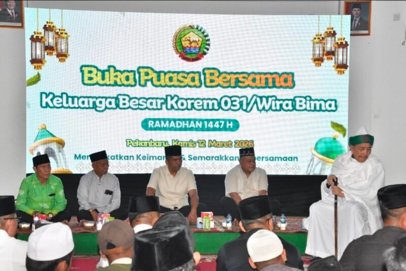 PEKANBARU || Danrem 031/WB Brigjen TNI Agustatius Sitepu, S.Sos.,M.Si.,M.Han beserta keluarga besar Korem 031/Wira Bima menggelar kegiatan buka puasa bersama dalam rangka mempererat silaturahmi serta meningkatkan kebersamaan di bulan suci Ramadhan. Kegiatan yang berlangsung penuh kehangatan ini dihadiri oleh tokoh agama dan tokoh masyarakat Tokoh Adat serta keluarga besar prajurit Korem 031/Kamis 12/3/26.