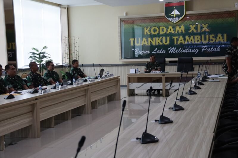 PEKANBARU || Kodam XIX/Tuanku Tambusai (TT) menggelar Rapat Koordinasi Tim Penilai Internal (TPI) Wilayah Tertib Reformasi Birokrasi (WTRB) dan Zona Integritas (ZI) di Ruang Yudha Makodam XIX/TT, Selasa (27/1/2026).