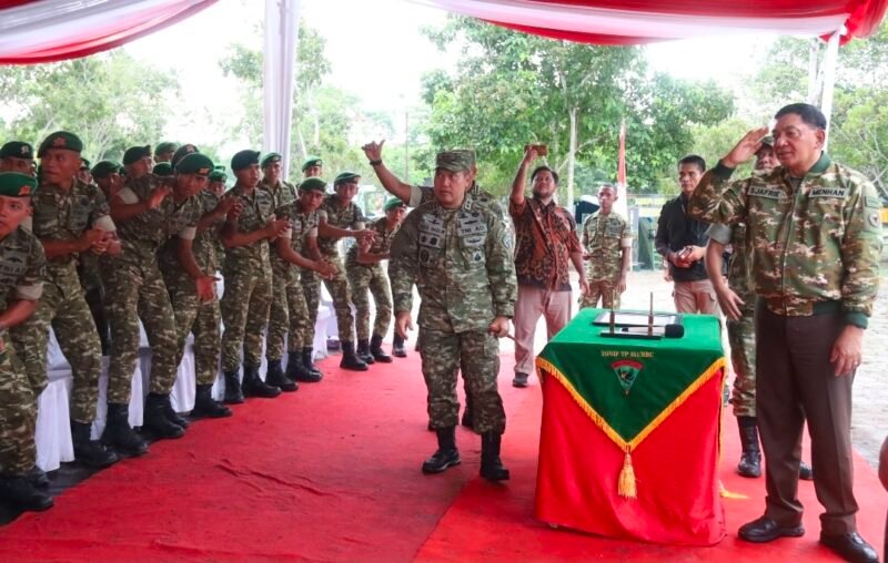 SIAK || Pangdam XIX/Tuanku Tambusai Mayjen TNI Dr. Agus Hadi Waluyo, S.A.P., M.M., CHRMP., mendampingi Menteri Pertahanan Republik Indonesia Jenderal TNI (Purn) Sjafrie Sjamsoeddin dalam kunjungan kerja ke Yonif TP 851/BBC, Kabupaten Siak pada Kamis 18/12/25.