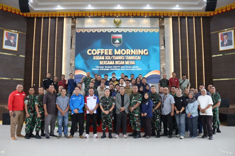 PEKANBARU || Kodam XIX/Tuanku Tambusai menggelar kegiatan Coffee Morning bersama insan pers, Rabu (28/1/2026) pukul 08.00 WIB, di Gedung Kaharuddin Nasution, Makodam XIX/Tuanku Tambusai, Pekanbaru. Kegiatan ini menjadi momentum strategis untuk mempererat sinergi, komunikasi, dan kemitraan antara TNI AD dengan media massa di Provinsi Riau.