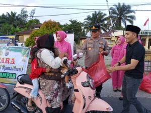 Detakgaruda.com,- KAMPAR – Dibulan suci Ramadhan dengan berbagi kebaikan, Polsek Kampar bersama Bhayangkari Polsek Kampar menggelar aksi sosial dengan membagikan takjil gratis kepada para pengendara di Jalan Raya Pekanbaru – Bangkinang Km 48 tepatnya di depan Mapolsek Kampar, Desa Bukit Ranah, Kecamatan Kampar, Sabtu sore (7/3/2026).
