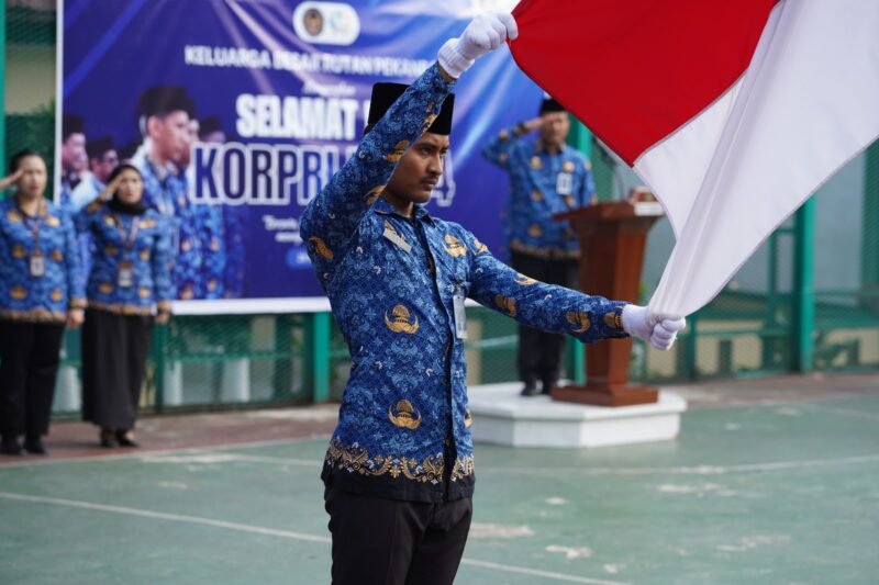 Pekanbaru – Rumah Tahanan Negara (Rutan) Kelas I Pekanbaru menggelar upacara peringatan Hari Ulang Tahun ke-54 Korps Pegawai Republik Indonesia (KORPRI) pada Senin (1/12/2025). Kegiatan yang berlangsung di halaman rutan itu diikuti seluruh jajaran pegawai dalam suasana tertib dan khidmat.